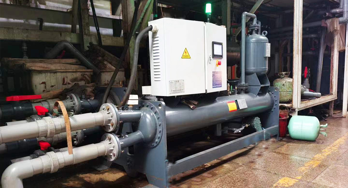 水冷冷水機利用殼管蒸發器使水與冷媒進行熱交換,冷媒系統在吸收水中的熱負荷,使水降溫產生冷水后,通過壓縮機的作用將熱量帶至殼管式冷凝器,由冷媒與水進行熱交換,使水吸收熱量后通過水管將熱量帶出外部散失。